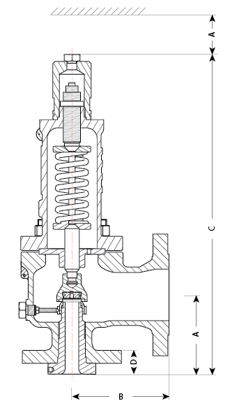 The Model 64 is an angular type safety valve at 90º between the inlet and the outlet connections. It has flanged connections, a full nozzle, direct action and is spring loaded. There are three types: Conventional, Balanced (with bellows) and Balanced-Piston. All three are designed with specific trims to work with gases, steam and liquids.